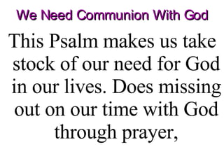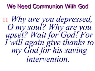 Why must I go about mourning oppressed by the enemy. When shall I come and behold. Psalm 421-2 ESV 1 As a deer.